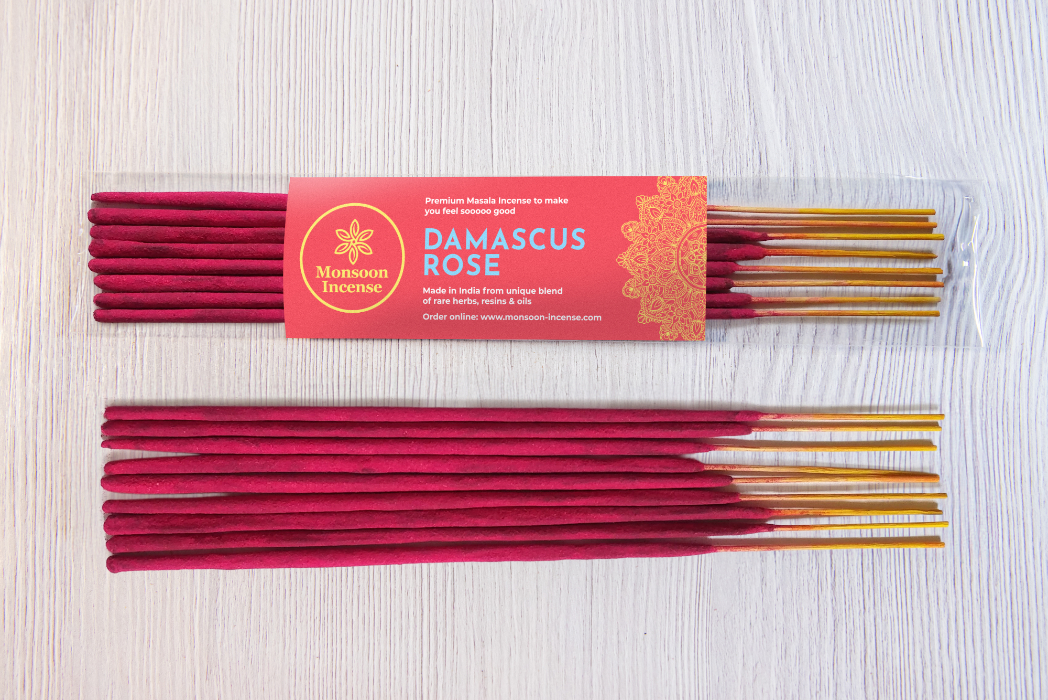 Each packet contains 15 grams of a premium quality masala incense with an average burn time of 40-45 minutes per stick. Skillfully created from precious natural resins, essential oils, and absolutes.